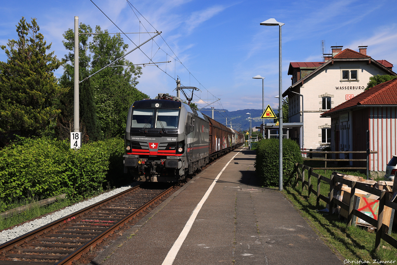 193 456 mit dem DGS 44982 Lindau-Reutin - Friedrichshafen Gbf in WasserburgWeiterhin unverzichtbar im Nahverkehr in Richtung Allgäu ist die Baureihe 612 und das wird, nach derzeitigem Stand, auch noch fast ein Jahrzehnt lang der Fall sein: