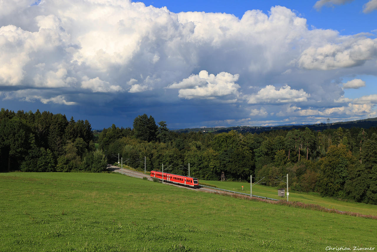 612 573/073 als RE-G 3888 München Hbf - Lindau-Insel bei HeimholzAber auch der Güterverkehr ist nachwievor eine feste Größe auf der Strecke von/nach München, auch wenn die Zahl zuletzt zu Gunsten der Südbahn etwas abgenommen hat:
