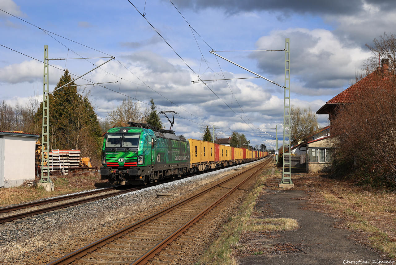 193 757 mit dem DGS 42202 (Trieste Campo Marzio -) Salzburg-Gnigl Vbf - Wolfurt in SchlachtersImmer noch ein fester Bestandteil im Güterzugrepertoire der Region ist der Kieszug unter Regie der ÖBB: