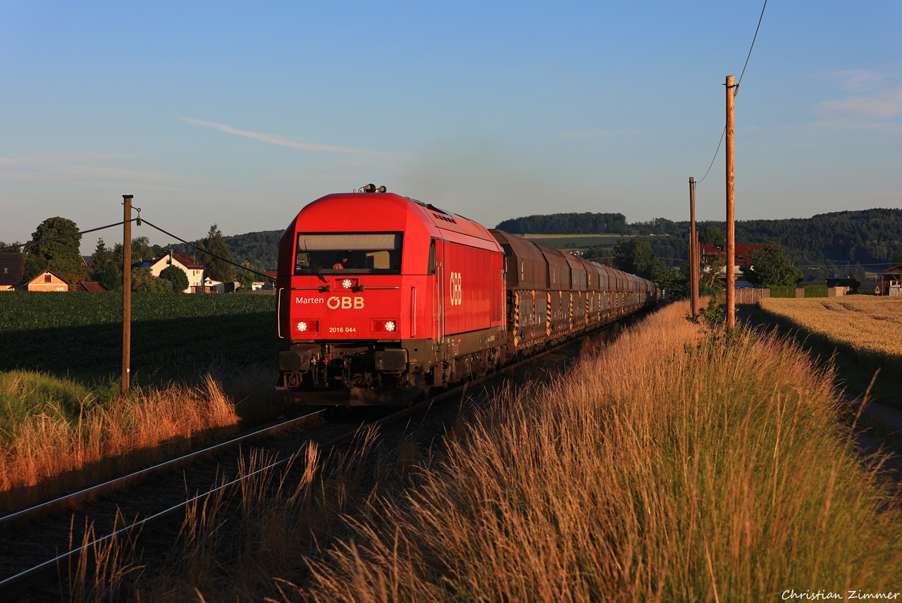 2016 044 "Marten" mit dem DGN 59791 Kressbronn - Roßberg bei Tannhausen. Der Namenspatron der Lok ist selbst häufig auf dem Zug als Tf unterwegsStichwort ÖBB: Auch ein kurzer Blick über die nahen Landesgrenzen lohnt sich immer wieder: