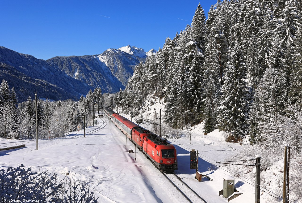 1116 131 und 1016 042 mit dem EC 163 "Transalpin" im Bahnhof Wald am ArlbergEine defekte Weichenzunge an der falschen Stelle zwang am Monatsende den leeren Stahlzug aus Wolfurt in die Niederlande zu einer Umleitung über den Inselbahnhof: