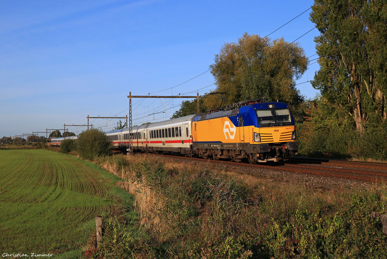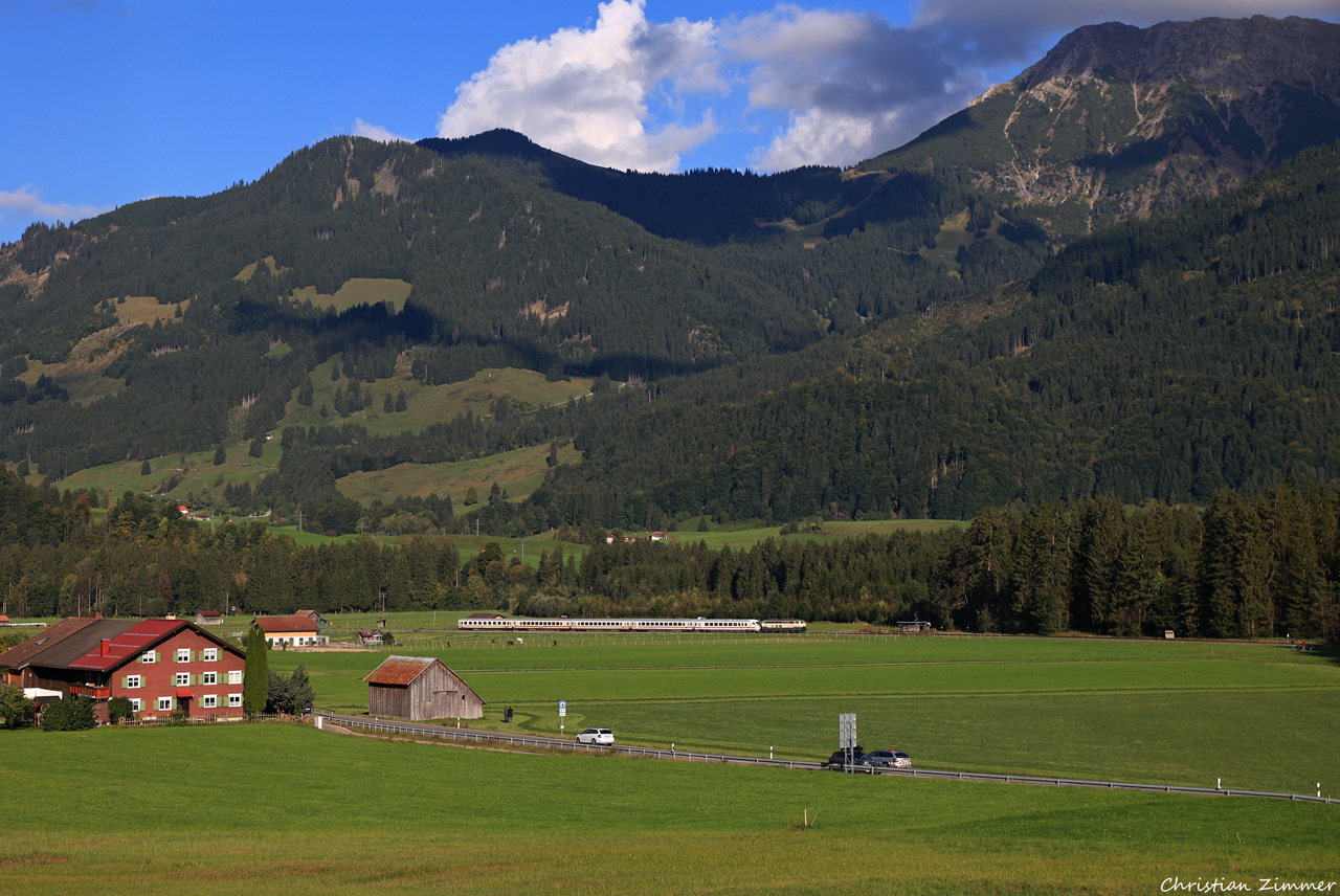 193 737 mit dem IC 143 Amsterdam Westhaven - Berlin-Rummelsburg (Rbga) bei Teuge. Einen Tag später wurde dieser Zug zum ersten Mal mit einem 408 gefahren.Anfang Oktober verabschiedete sich dann der Nebelhorn endgültig von den deutschen Gleisen, sodass es für ein Abschlussbild nochmal in's Allgäu ging: