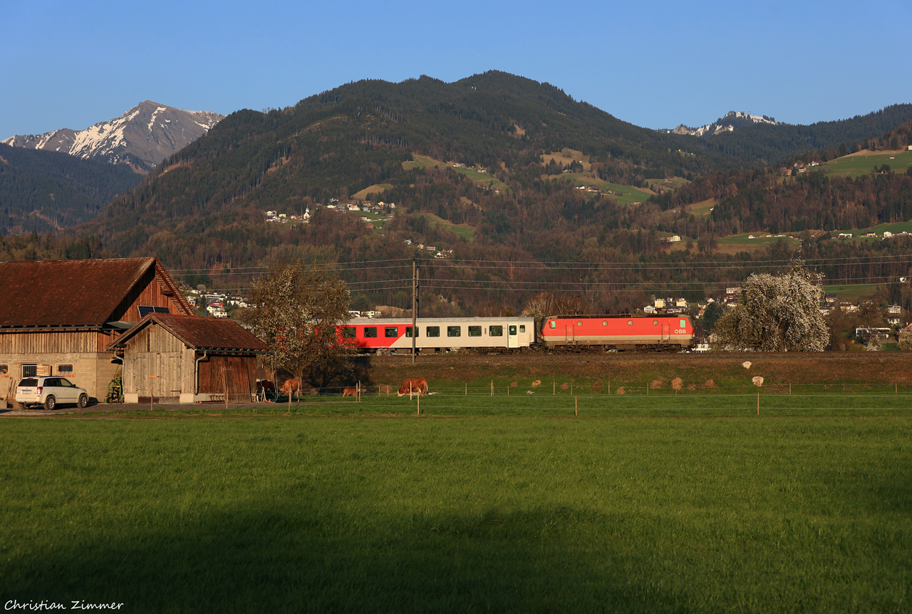 1144 021 mit dem D 665 Bregenz - Innsbruck Hbf bei Sulz-RöthisEin paar Tage nach der 1144-Aufnahme kam der, in meinen Augen, schönste Sonderzug in diesem Jahr an den Bodensee: