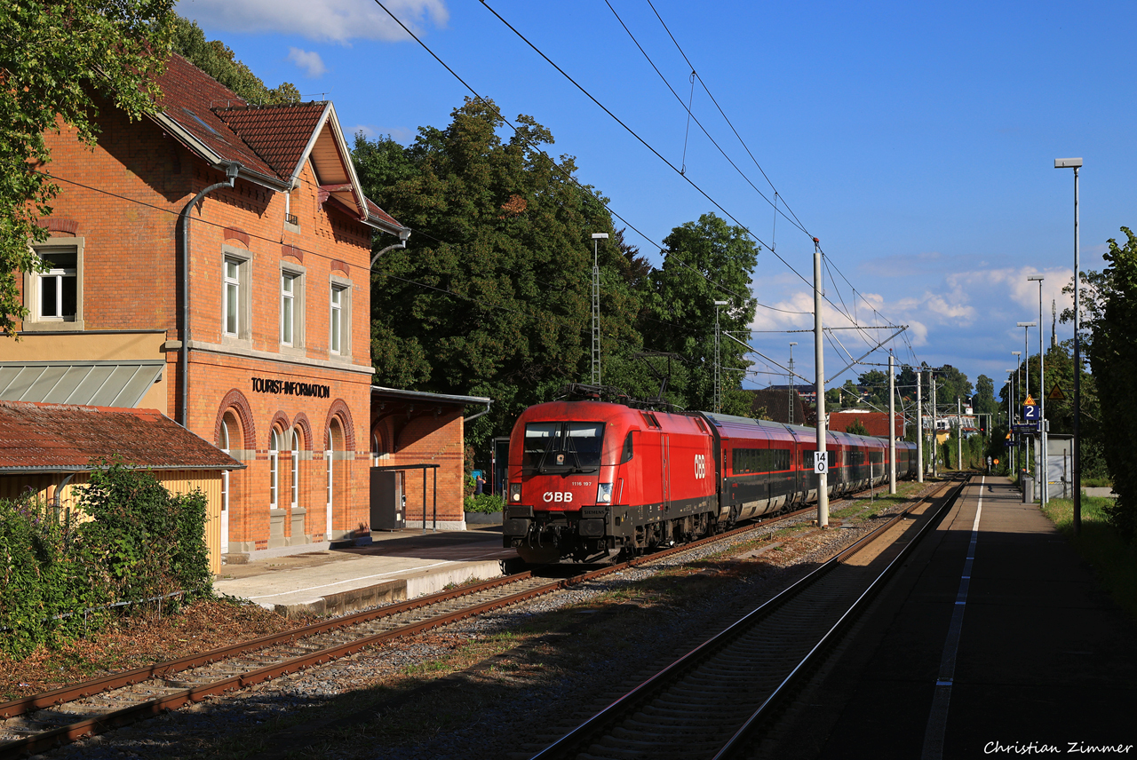 1116 197 mit dem RJX 890 (Flughafen Wien -) Bregenz - Frankfurt (M) Hbf in KressbronnZwischendurch besuchte auch die schönste Museumsgarnitur Österreichs die Region: