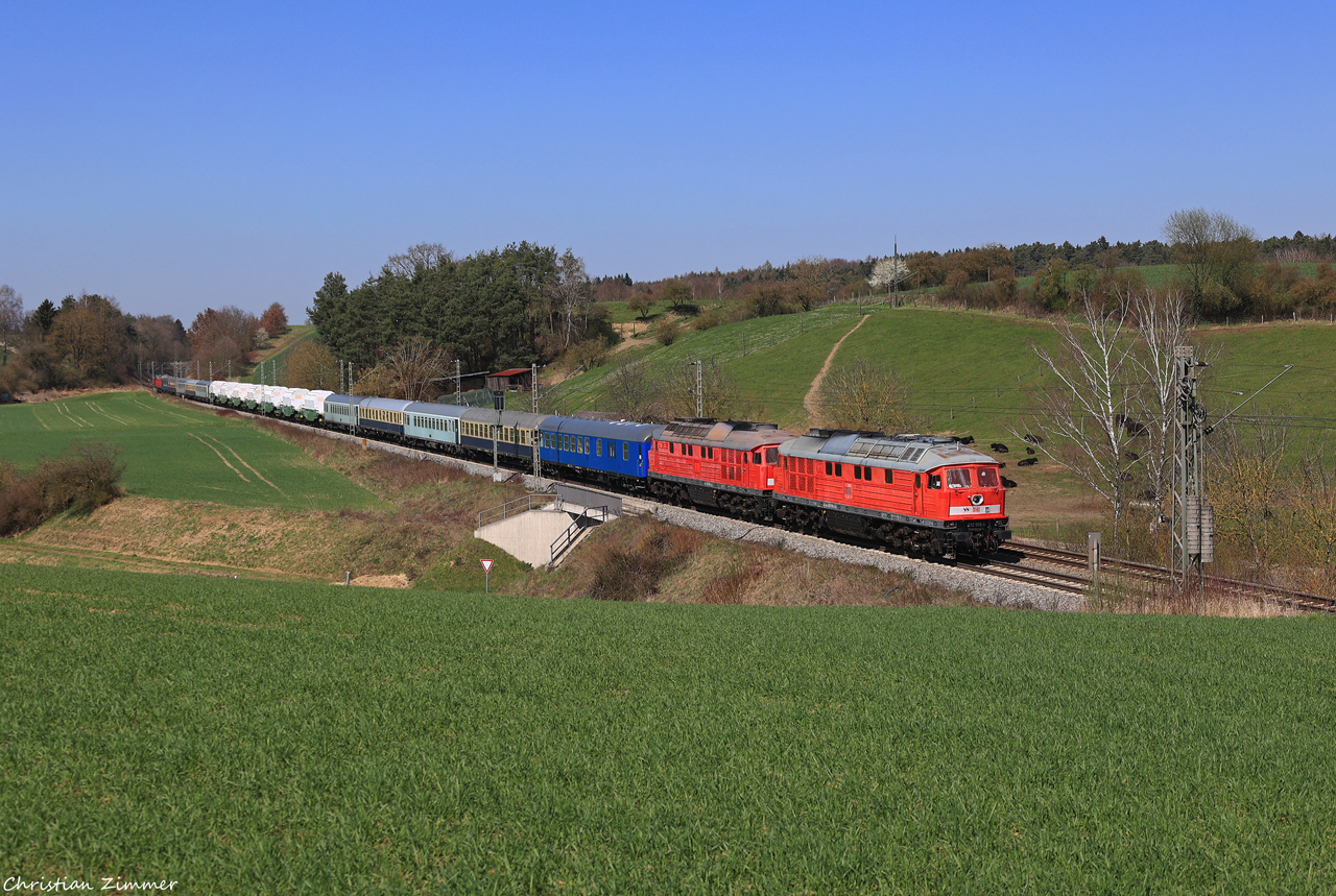 232 569+259+254+255 mit dem HILFZ 63103 Nordenham - Wörth (Isar) bei FahlenbachNach der Zeitumstellung richtete sich der Blick mehrerer Fotografen nach Vorarlberg, wo an vielen Tagen die letzte Planleistung der 1144 im Personenverkehr am abendlichen D-Zug nach Innsbruck dokumentiert wurde. Seit dem Fahrplanwechsel fährt das Zugpaar als Railjet und die 1144 ist nur noch im Güterverkehr anzutreffen: