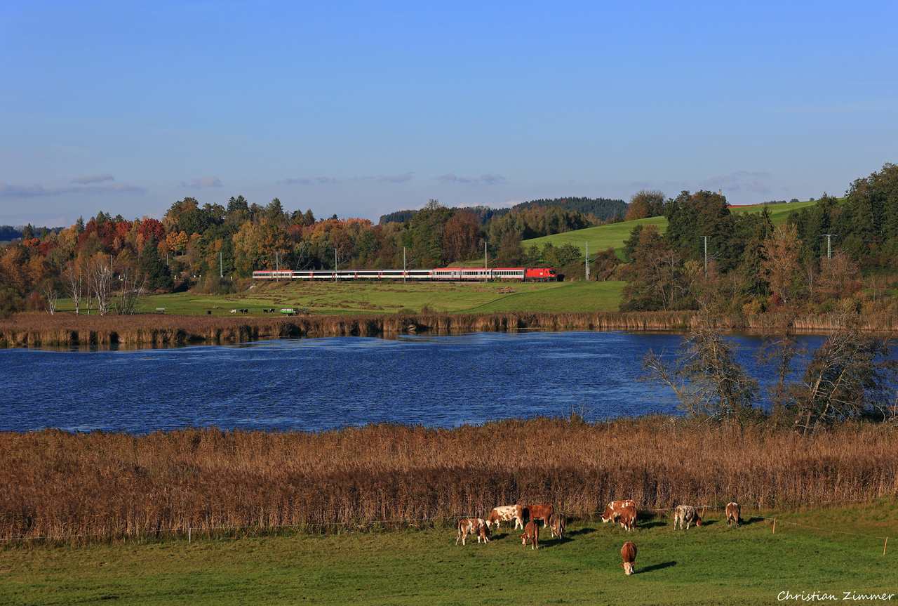 1116 269 mit dem EC 430 "Transalpin" Graz Hbf - Zürich HB am SchwarzenseeMit dem Herbst kam auch der unberechenbare Hochnebel zurück:
