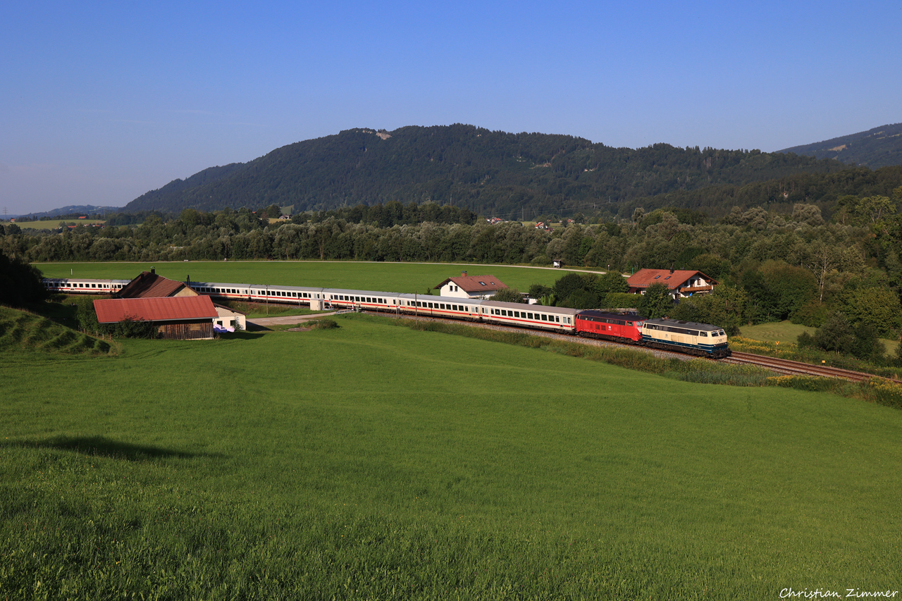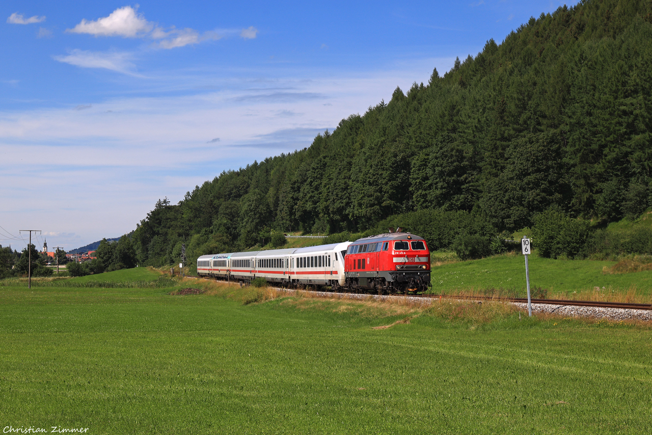 218 446+406 mit dem IC 2013 "Allgäu" Dortmund Bbf - Oberstdorf bei SteinNach Bekanntwerden der Einstellung des Südbahn-Railjets wurden auch hier noch offene Motive umgesetzt: